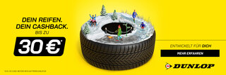 Beim Kauf von vier Dunlop PKW Winter- oder All-Season-Reifen ab 15 Zoll erhalten Sie einen Cashback von 20 €. Ab 17 Zoll erhalten Sie einen Cashback von 30 €.